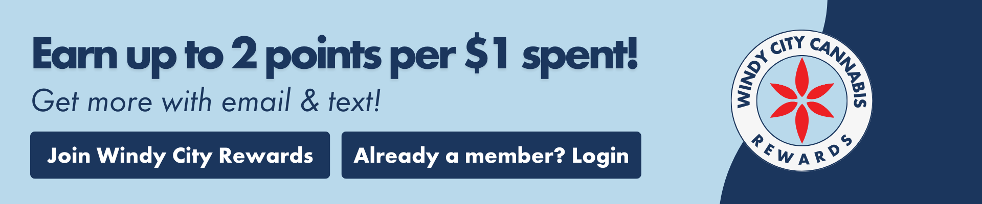 Join our Windy City Rewards Program, and earn 1 pt per $1 spent on every purchase!